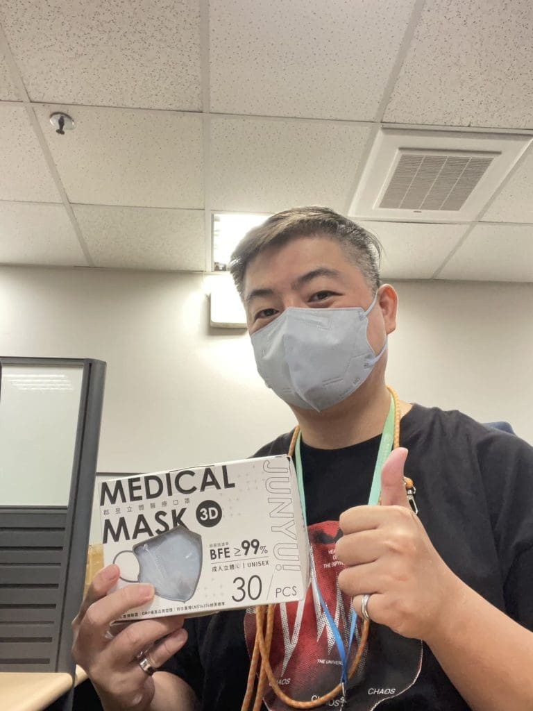 我通勤時間不算短,單趟大概三、四十分鐘。再加上進公司後還得一直戴著口罩開會、講話、走來走去,一整天少說要戴個八小時。